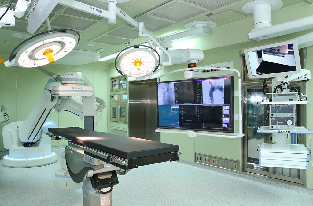 本院為國內少數已建置二間複合式手術室(Hybrid OR)之醫學中心,其整合Artis Zeego & Pheno 3D及影像造影儀及術中導航系統,醫師能更精確利用3D影像重組立即掌握手術確切位置,精準度提高,病人傷口小恢復快。病患得以在同一手術室內達成影像檢查、微創或傳統之影像導引治療及術後立即評估成效的全部流程,減少病患在影像檢查室和手術室之間多次移轉的可能風險,並同時提升手術之成功率,透過複合室手術室的運用與心臟科醫師整合性治療,可搶救更多心臟患者。